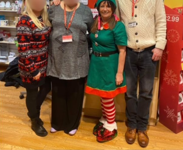 Kim does have another side to her personality as you can see from the photo below. Recently as part of a communtiy based project she dressed up as an Elf and has also offered to visit some of the young people in our children's homes as the Elf.